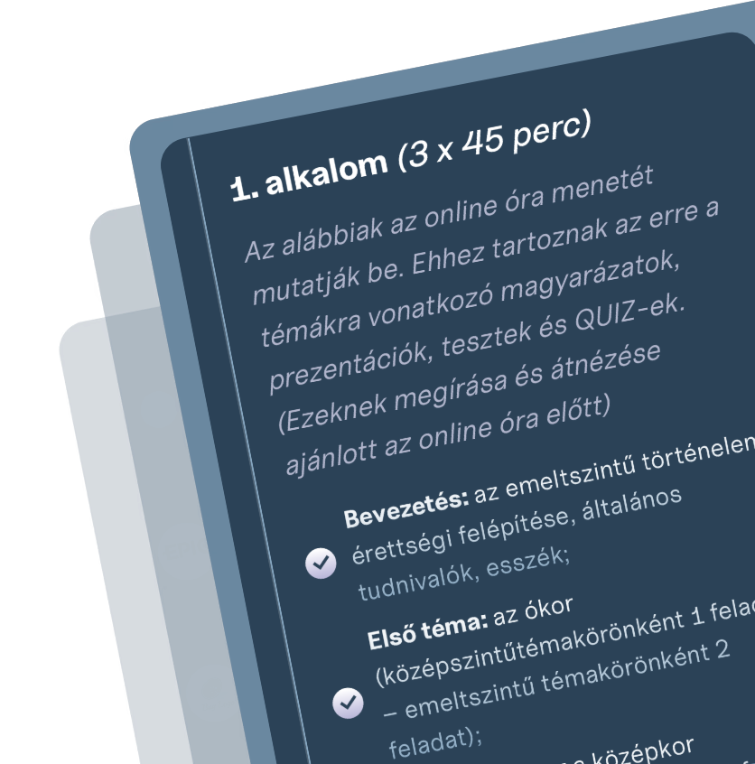 Profi online érettségi kurzusok magyarból, történelemből, matekból és angolból. Tanulj kényelmesen otthonról, és garantáld a sikered!