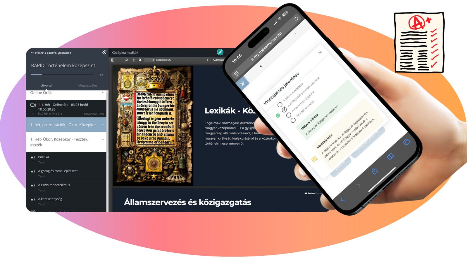 ✅ Tesztekkel Támogatott Tanulás: Interaktív QUIZ-ekkel pontosan követheted a fejlődésed, és láthatod a hiányosságaidat.